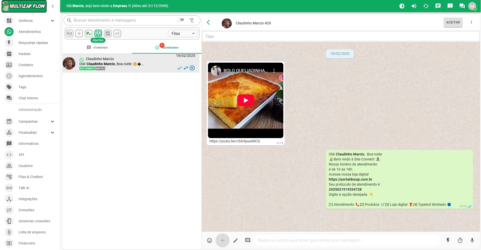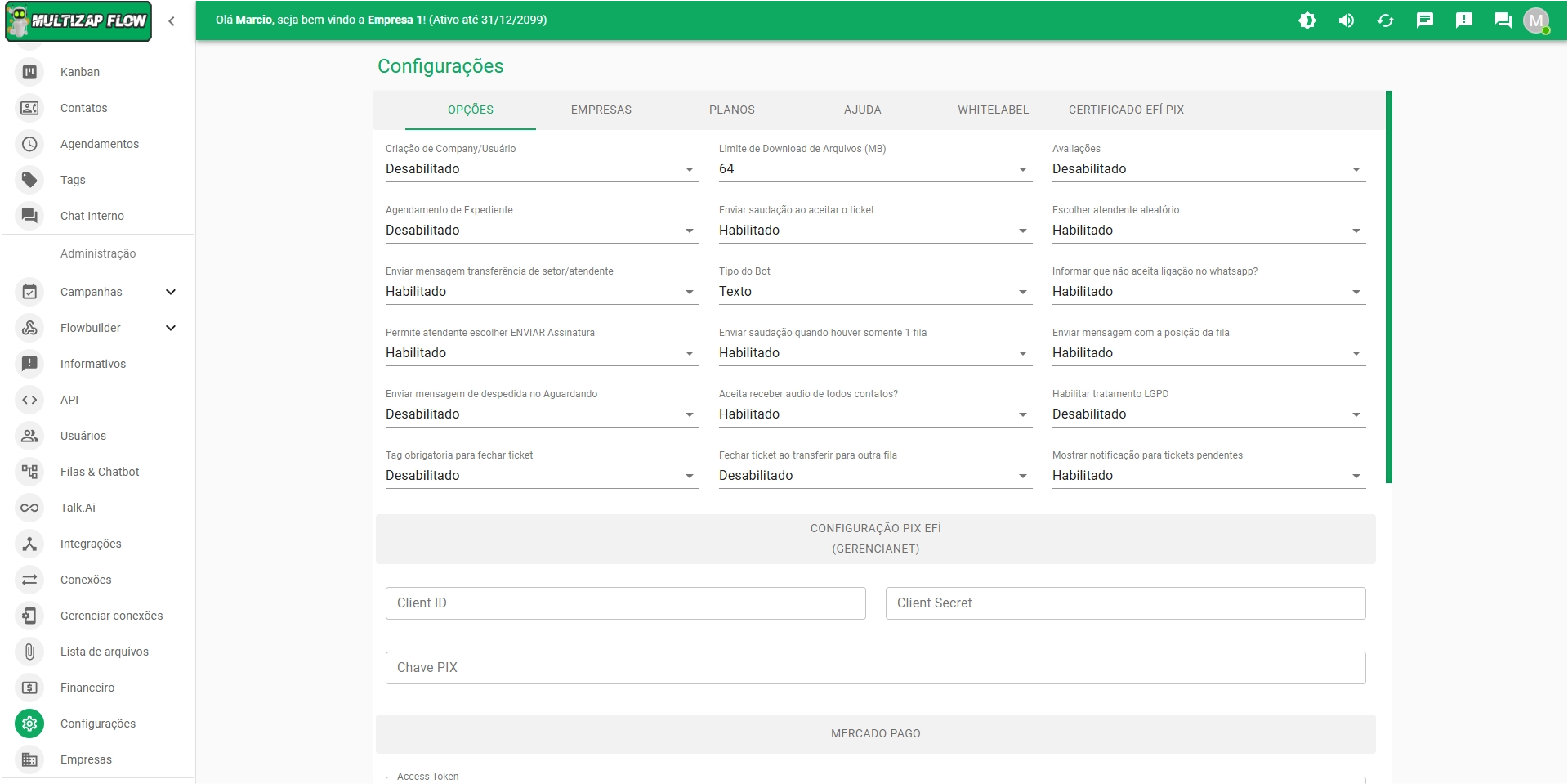 👉 Integração com Facebook e Instagram, Mercado pago, DialogFlow, N8N, WebHooks, TypeBot, ChatGPT.