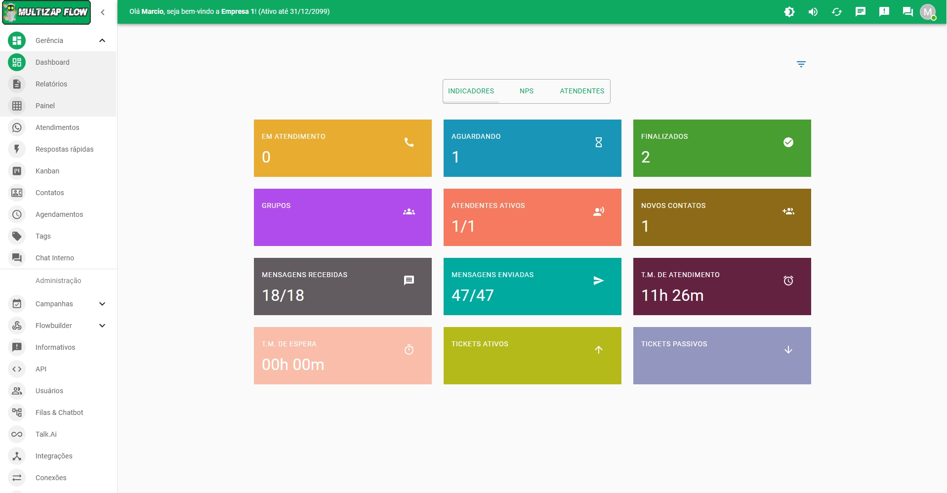 👉 Integrações: OpenAI, DialogFlow, N8N, TypeBot, WebHooks e Flowbuilder nativo.